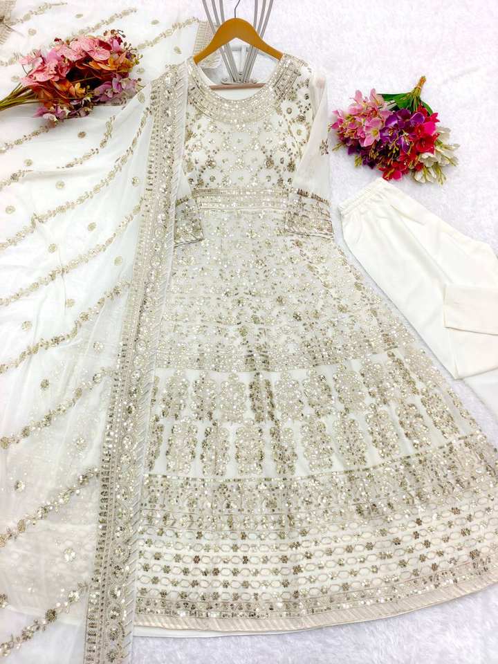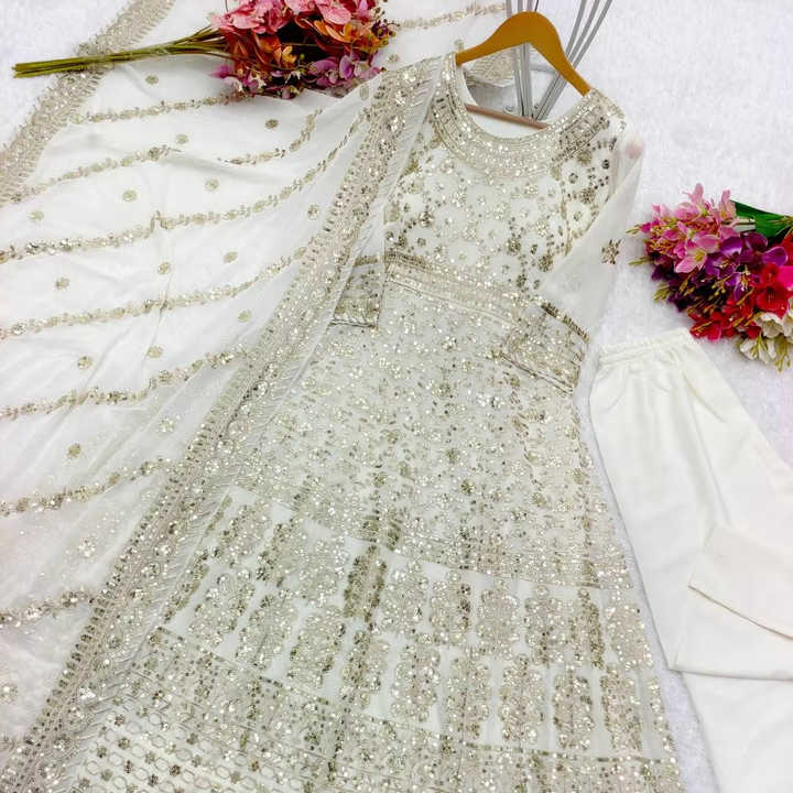 Party Wear Designer Anarkali Gwon avec Pent Dupatta séquence Emrodery Work