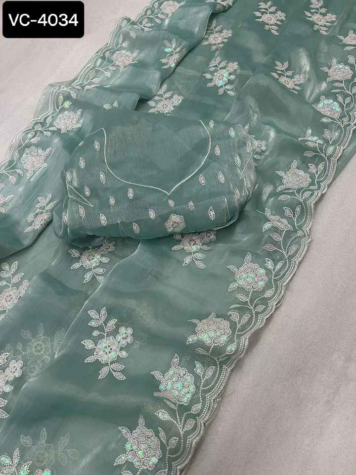 Party Wear Designer Bollywood Style Fancy Saree Dual Sequence Embroidery Work Rich Look Jimmi Cho Silk Saree With Blouse Pieces