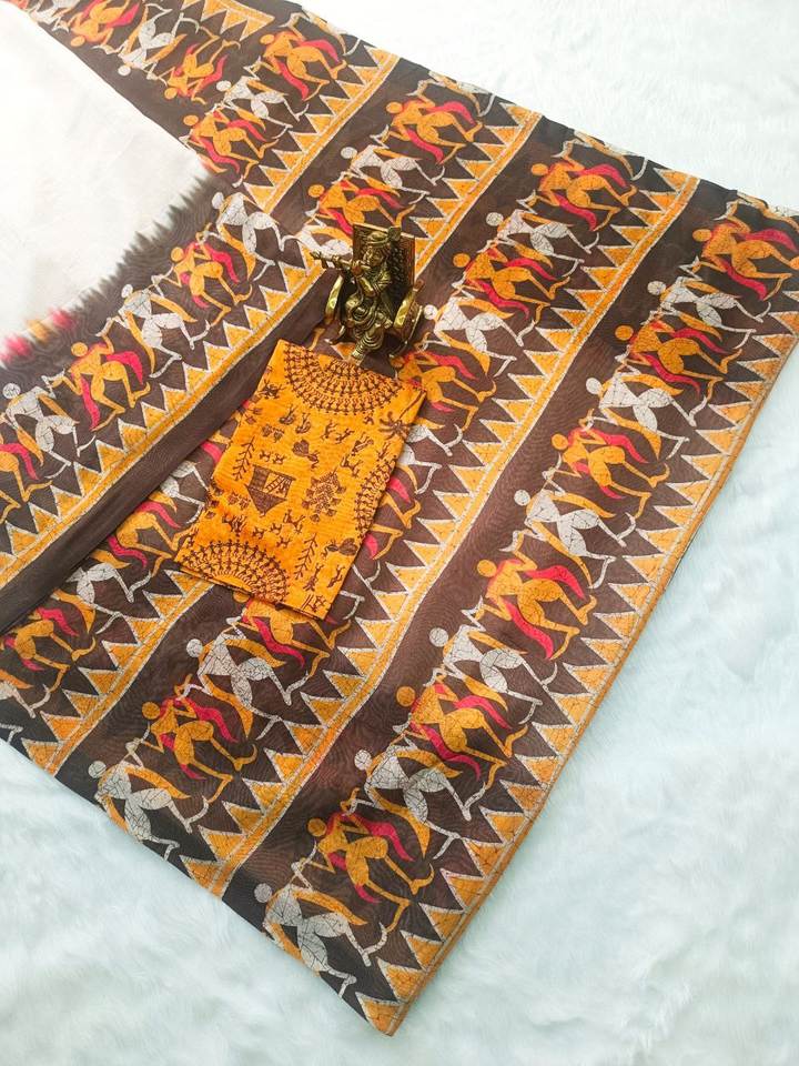 Travail:Saree à double frontière Zari avec imprimé créatif