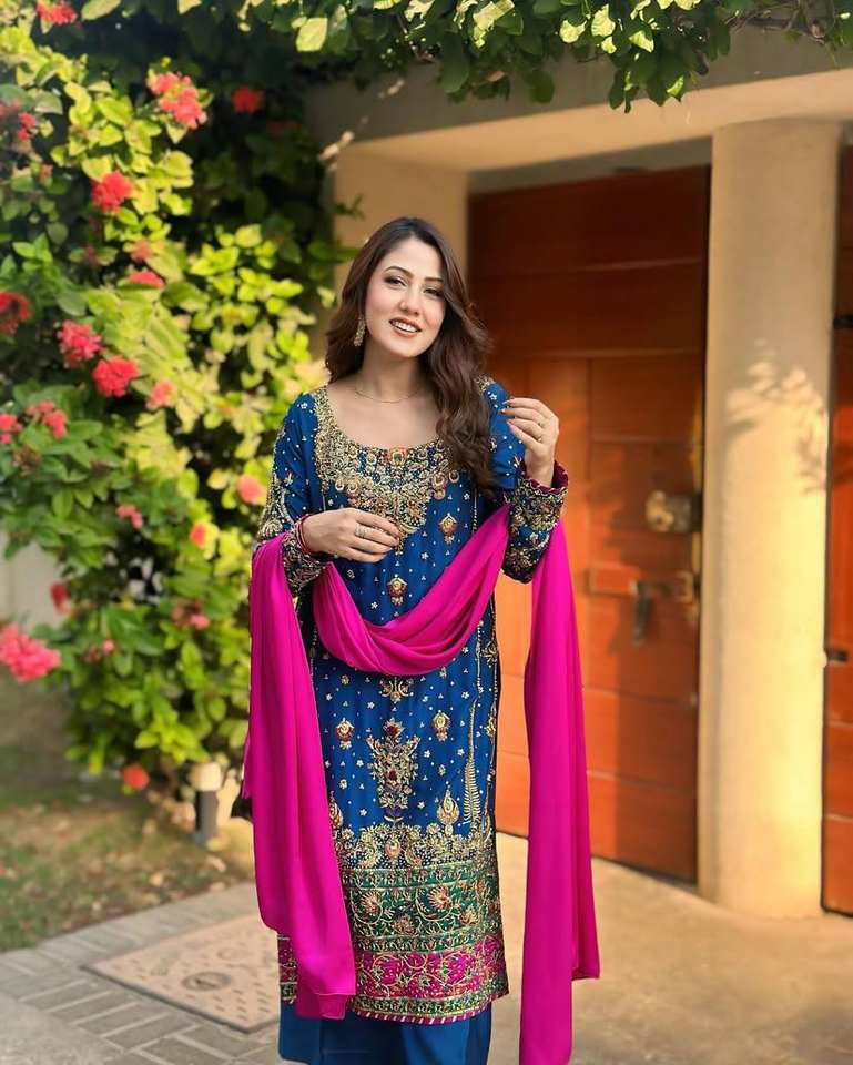 Ensemble costume de créateur avec Zari, séquence et broderie