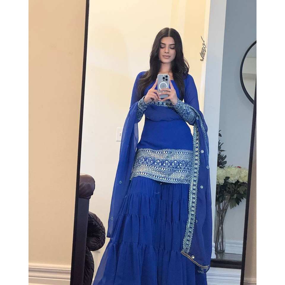 Party Wear Look taille XL haut bas Dupatta avec fil et travail de séquence