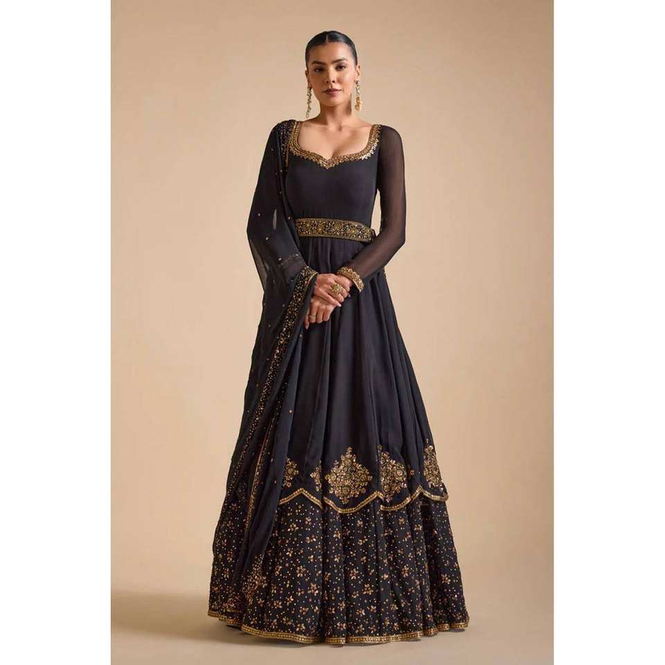 Party Wear Prom Dresses Elegant Gown and Dupatta with Intricate Thread and Sequence Work