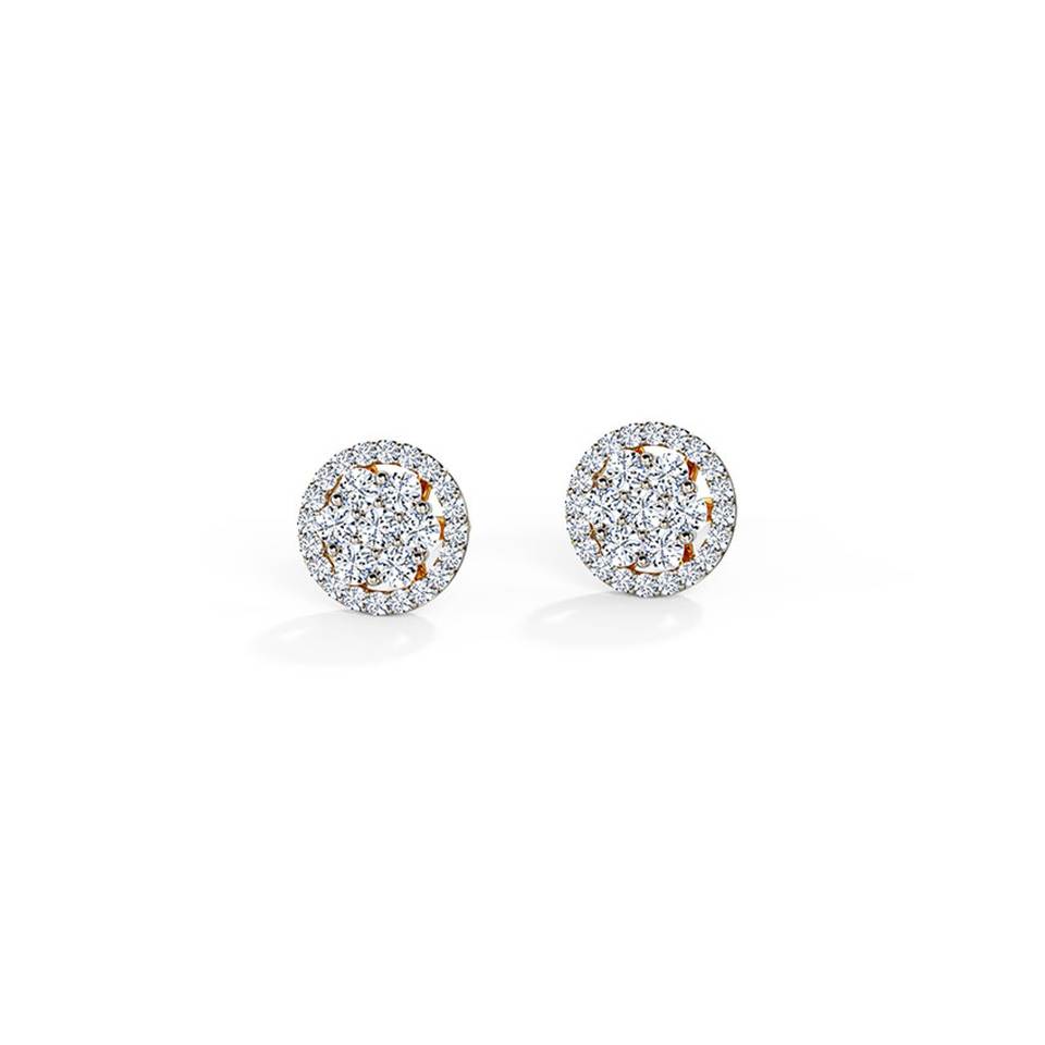Boucles d'oreilles clous en or jaune 14 carats avec halo de diamants de laboratoire et sept pierres fantaisie pour filles et femmes, idéales pour les soirées