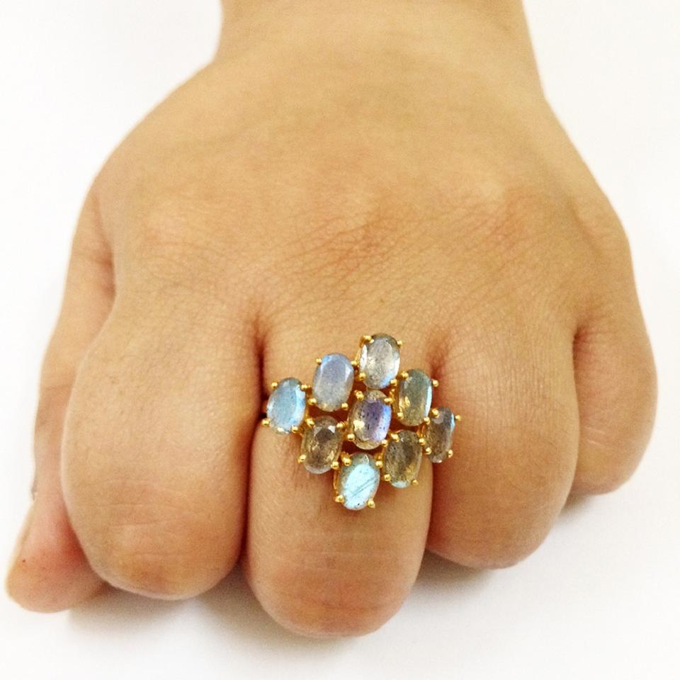 Party Wear Argent Sterling 925 Plaqué Or Citrine Labradorite Pierres Précieuses Bague Fleur Classique À La Mode