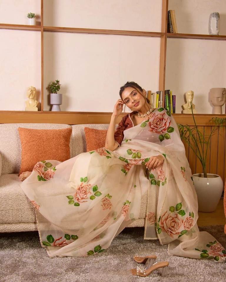 Product Name:Party Wear Teby Silk With Floral Print And Heavy Handwork Saree