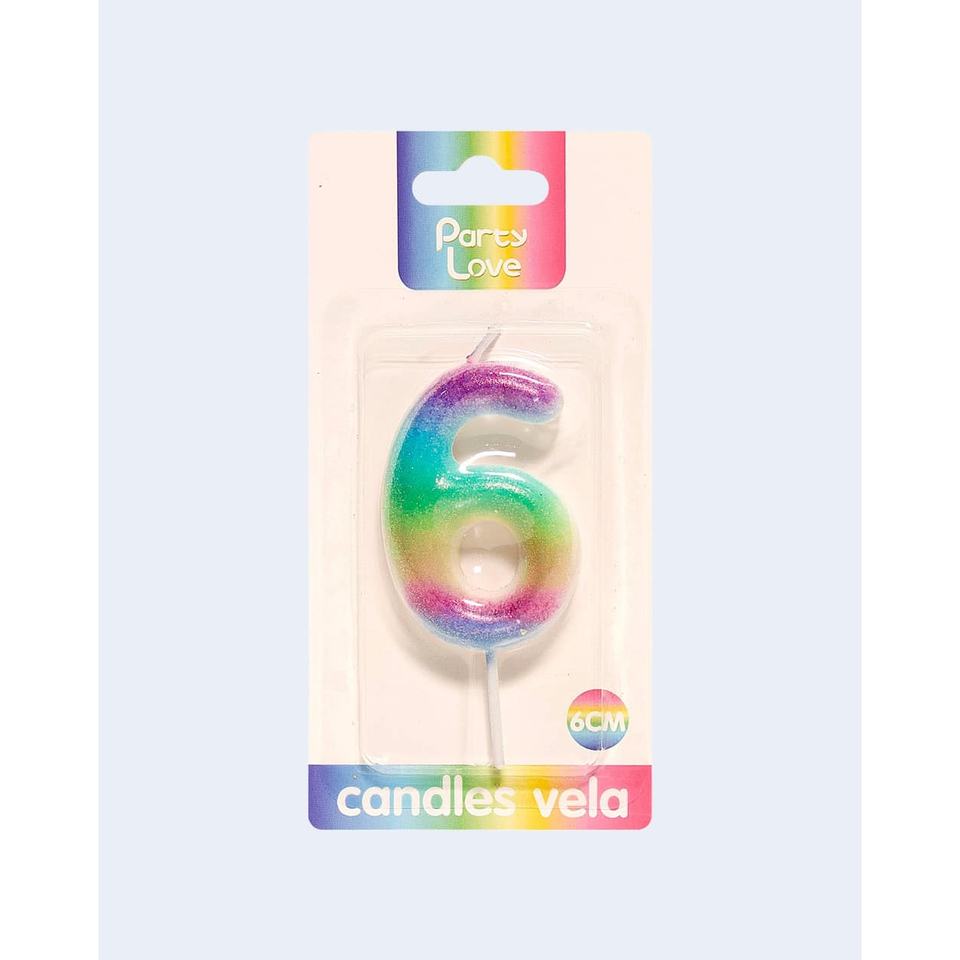 Bougie d'anniversaire pour la fête du numéro 6, cire de paraffine non parfumée, 6 cm, couleur arc-en-ciel