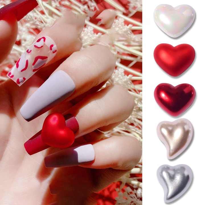 Paso Sico, boutons rotatifs à double usage, populaires, faits à la main, avec des perles en forme de cœur, 2 tailles, pour la décoration des ongles, la Saint-Valentin