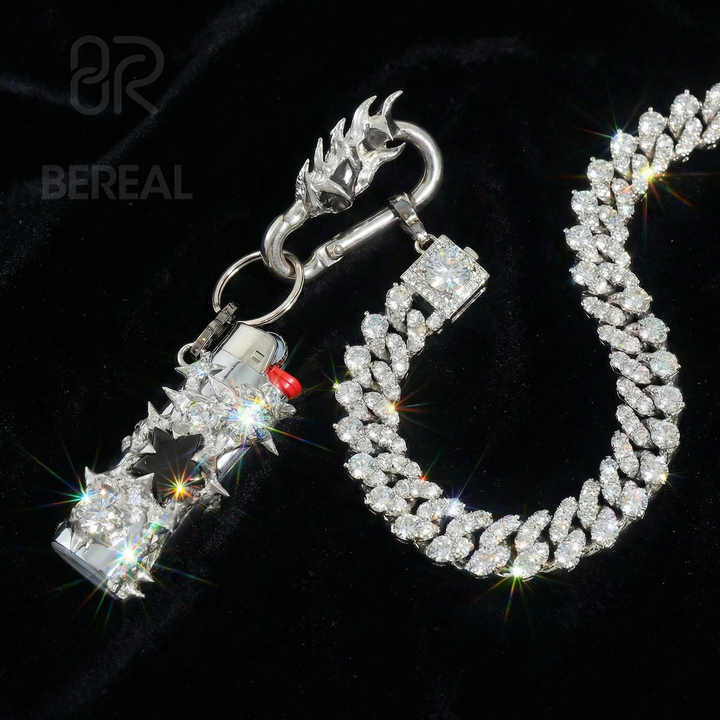 Chaîne de portefeuille Hip Hop en moissanite VVS, testée au diamant, personnalisée pour homme, en argent 925, avec pendentif étui à briquet Iced Out, bijoux fins