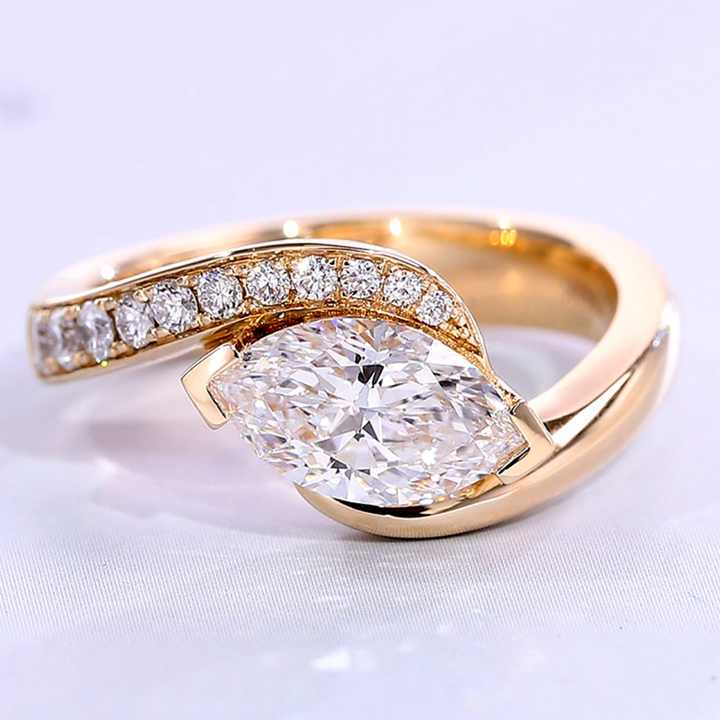 Testeur de diamants Pass Diamond Tester IGI certifié, bague de fiançailles en or massif 14 carats avec diamant de laboratoire de taille marquise, bague de fiançailles en diamant de laboratoire