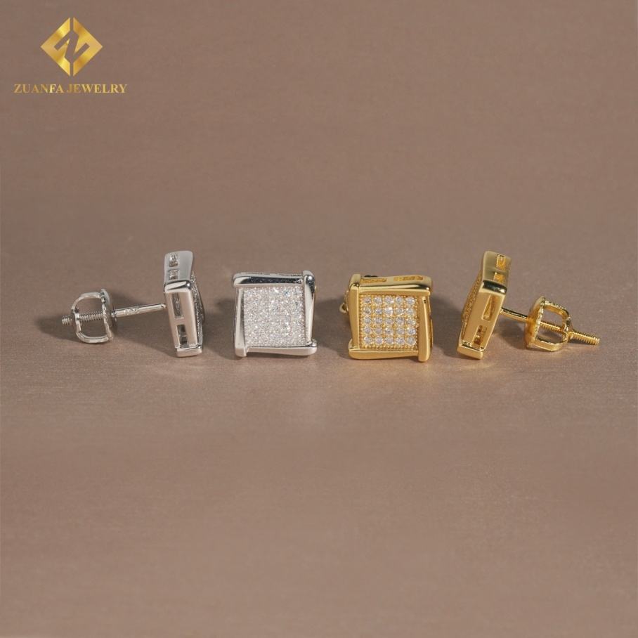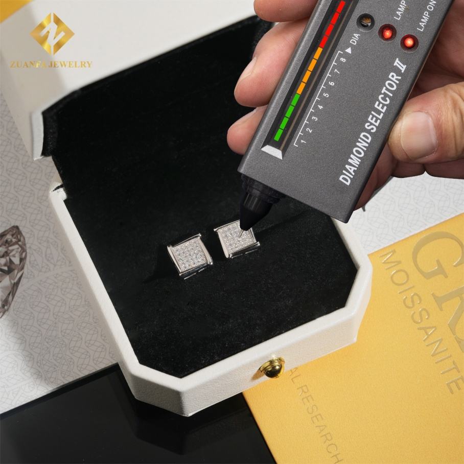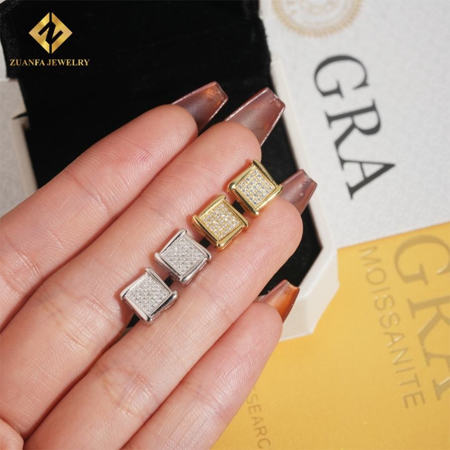 Boucles d'oreilles en argent 925 serties de diamants, forme carrée, testées au diamant, VVS Moissanite, style hip-hop, bijoux unisexes