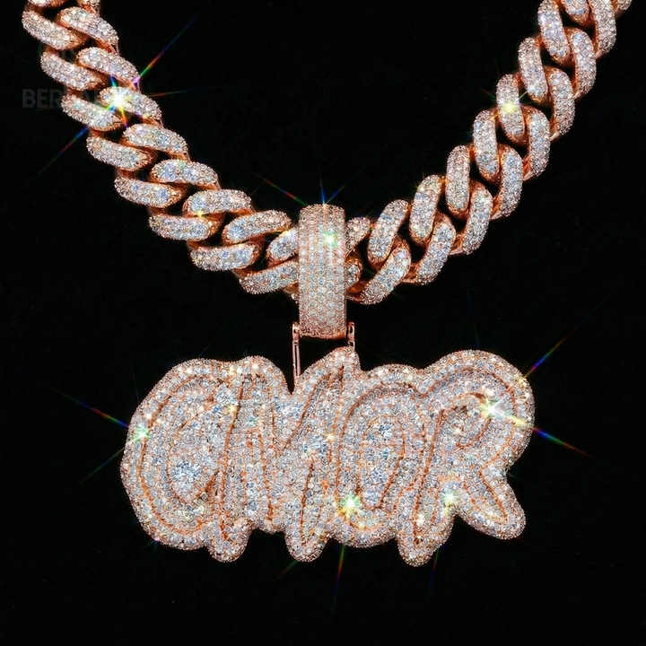 Pendentif Lettre Personnalisée Hip Hop Iced Out 3D en Moissanite VVS Coupe Ronde, Testée au Diamant, Bijoux pour Homme
