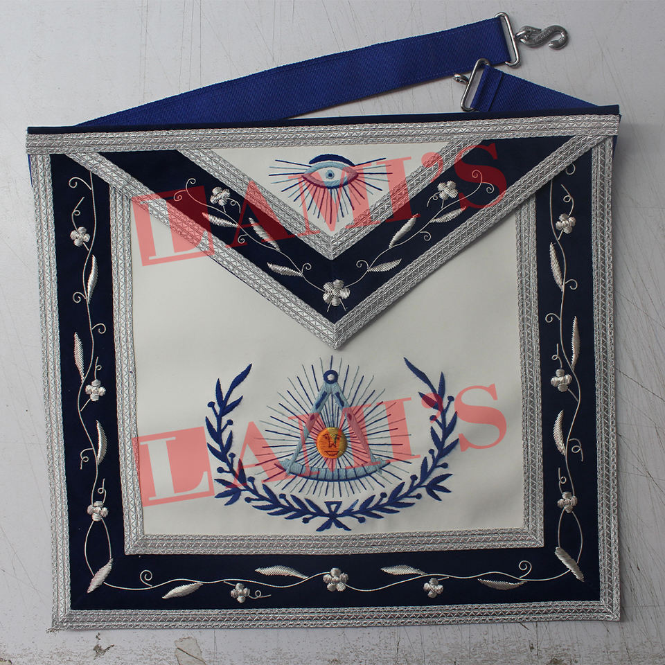 Tablier des maîtres passés avec bordure brodée Tablier en peau d'agneau 100% Tablier maçonnique personnalisé