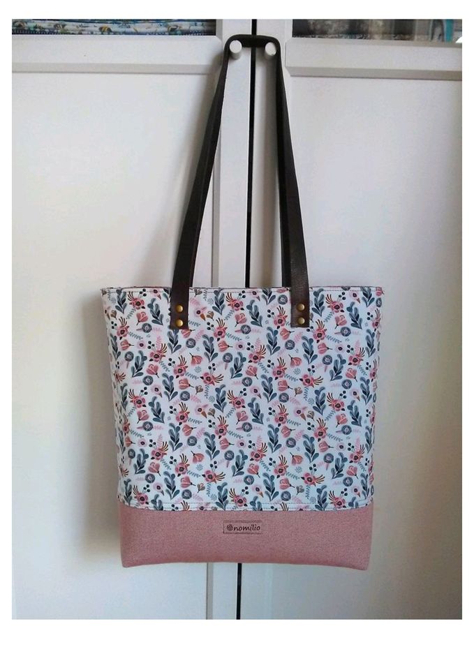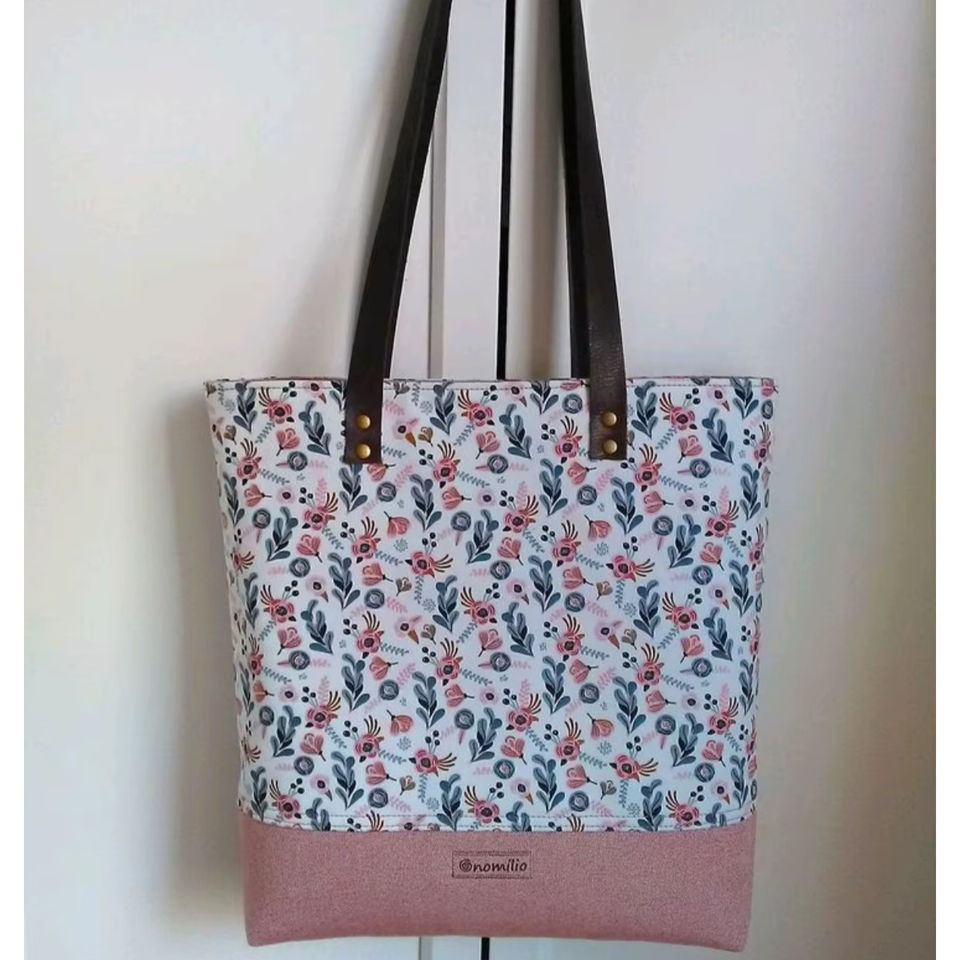 Sac fourre-tout à panneaux floraux pastel avec imprimé botanique et base rose en blanc et multicolore, fabriqué en toile de coton mélangée