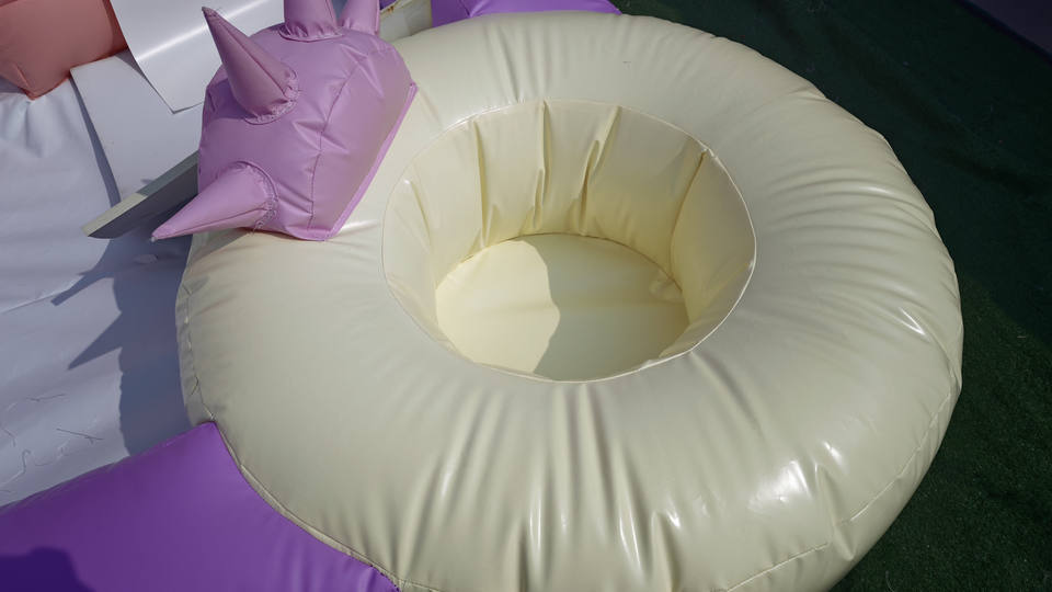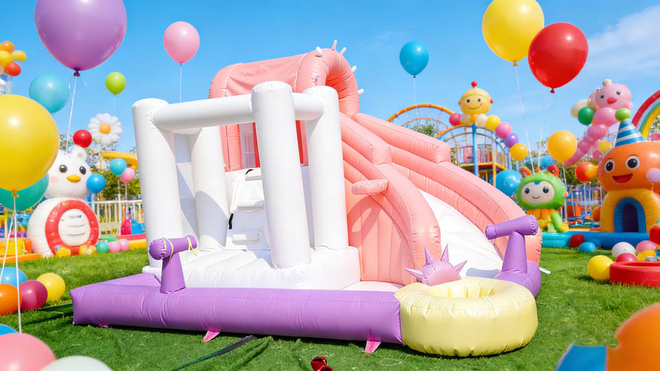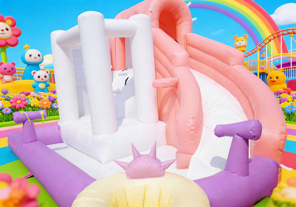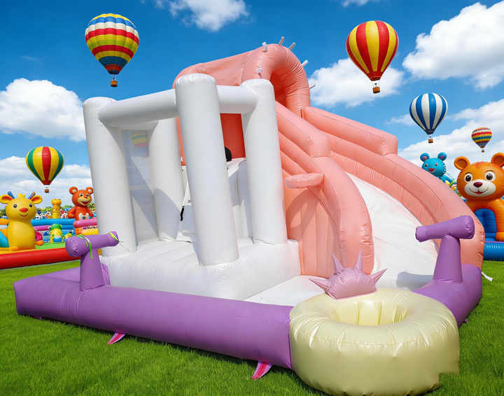 Toboggan aquatique gonflable pastel avec piscine, combo gonflable de jardin avec piscine et château gonflable avec toboggan, aire de jeux aquatique pour enfants