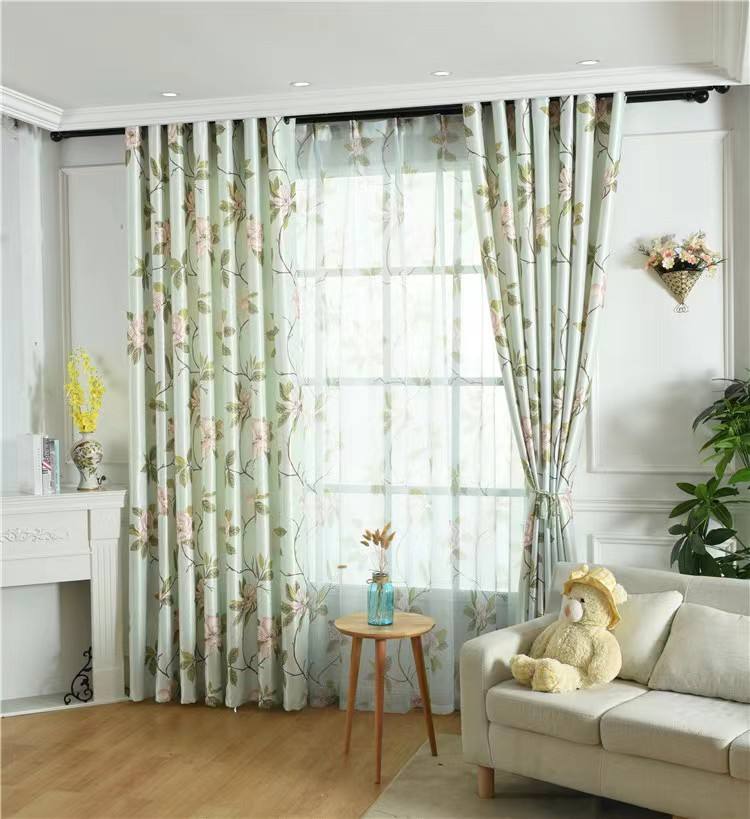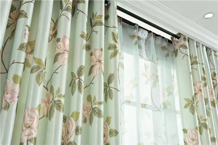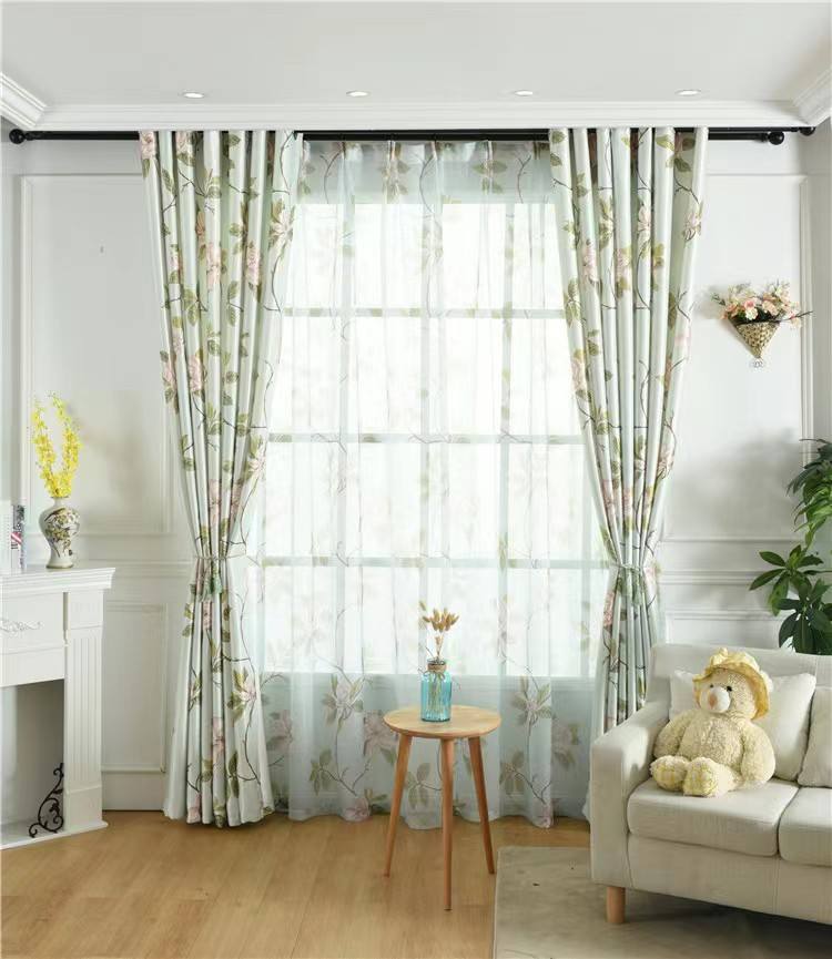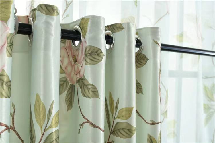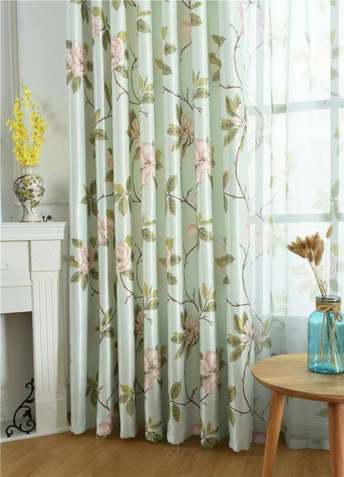 Voilage imprimé en polyester style pastoral, motif feuilles séchées, imprimé simple face, plissé général
