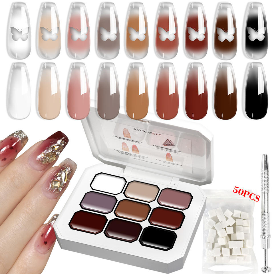 Pat Paint Kit de gel pour ongles 9 couleurs 50 éponges Metal Grabber Ombre Gradient UV/LED Gel Blooming Floral No Wipe Nail Art LED Lamp