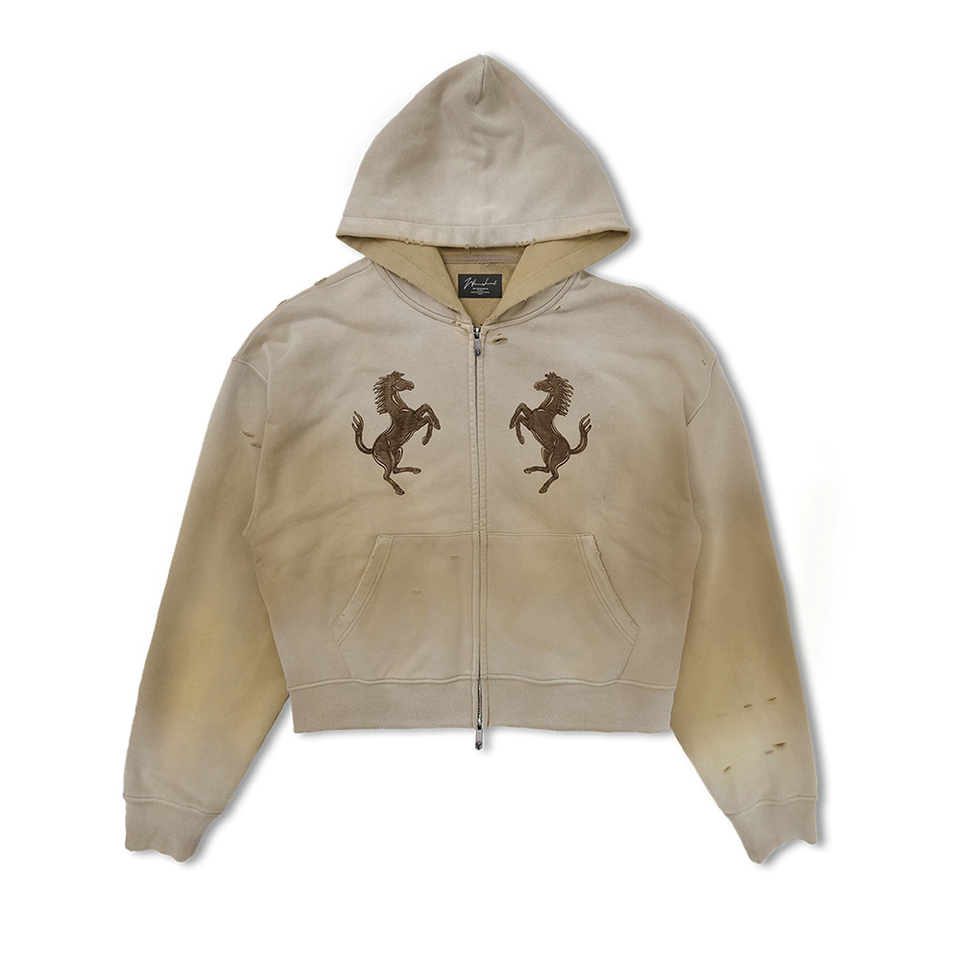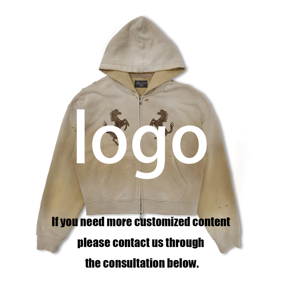 Sweat à capuche unisexe zippé, coupe courte, effet délavé et déchiré, broderie patch, surdimensionné, personnalisé pour homme