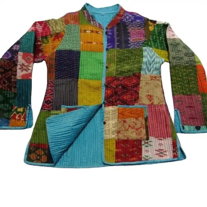 Patch travail soie Patola designee veste matelassée femmes veste en soie Patola Kantha veste longue manches florales dames manteau réversible