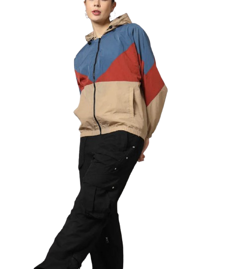 Veste coupe-vent patchwork respirante à capuche pour femme, vêtements décontractés, coupe-vent avec logo, bloc de couleur, veste imperméable