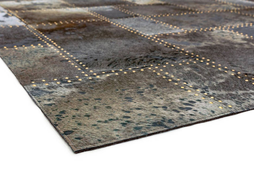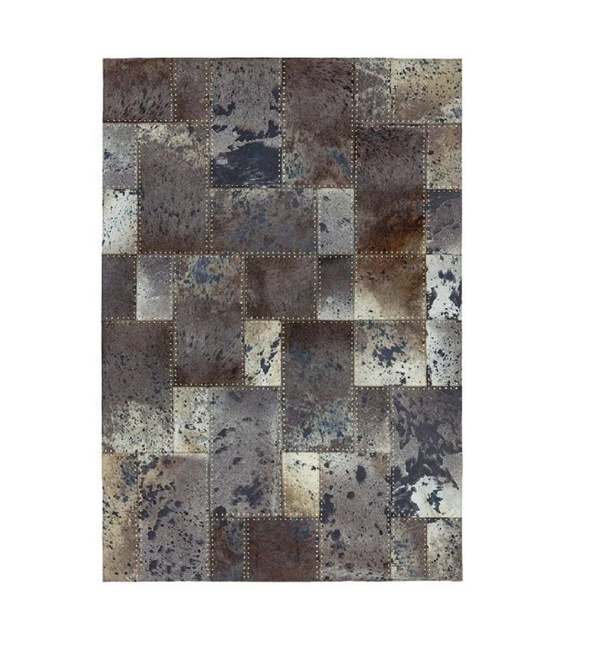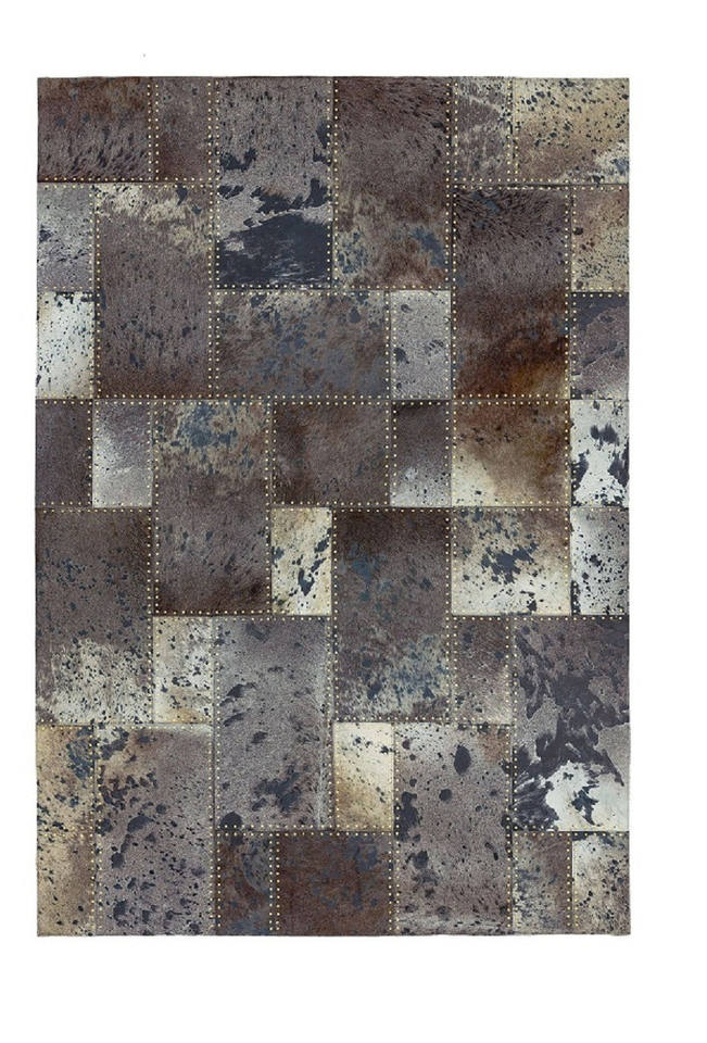 Patchwork fait à la main en cuir de fourrure de vachette noir et crème tapis intérieurs et extérieurs pour la décoration de la maison et du bureau
