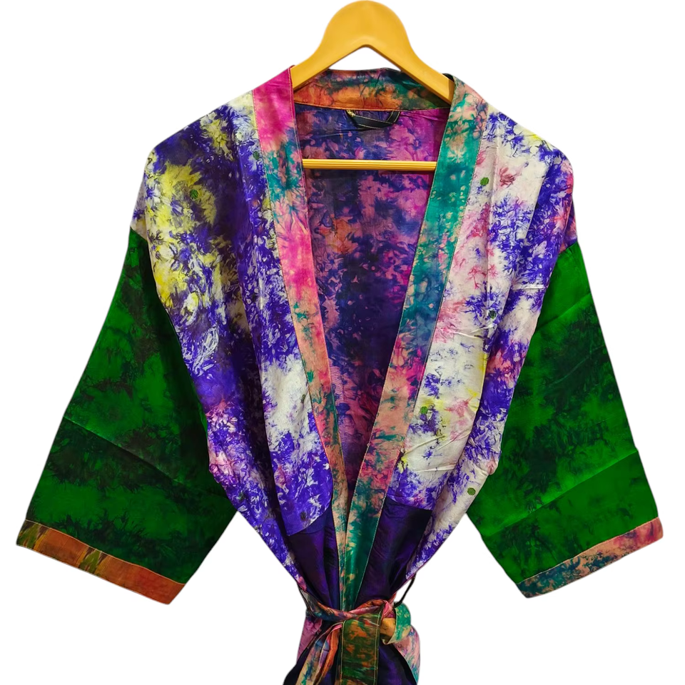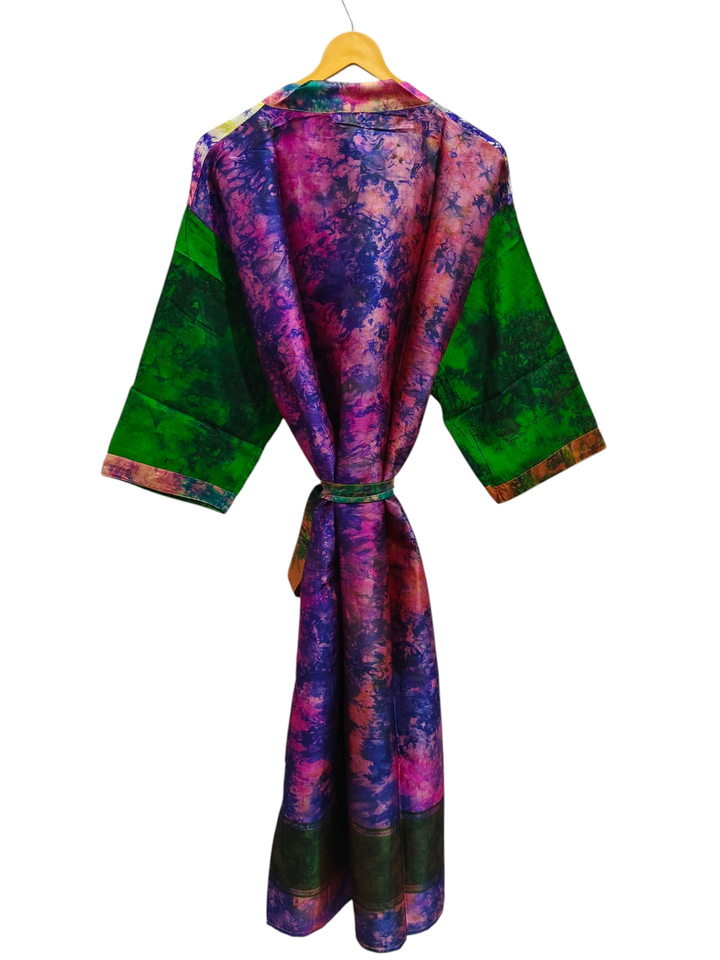 Patchwork Kimono Robe Bikini Cover Up Night Wear Long Robe, Kimono Sari en soie recyclée vintage indien fait à la main,