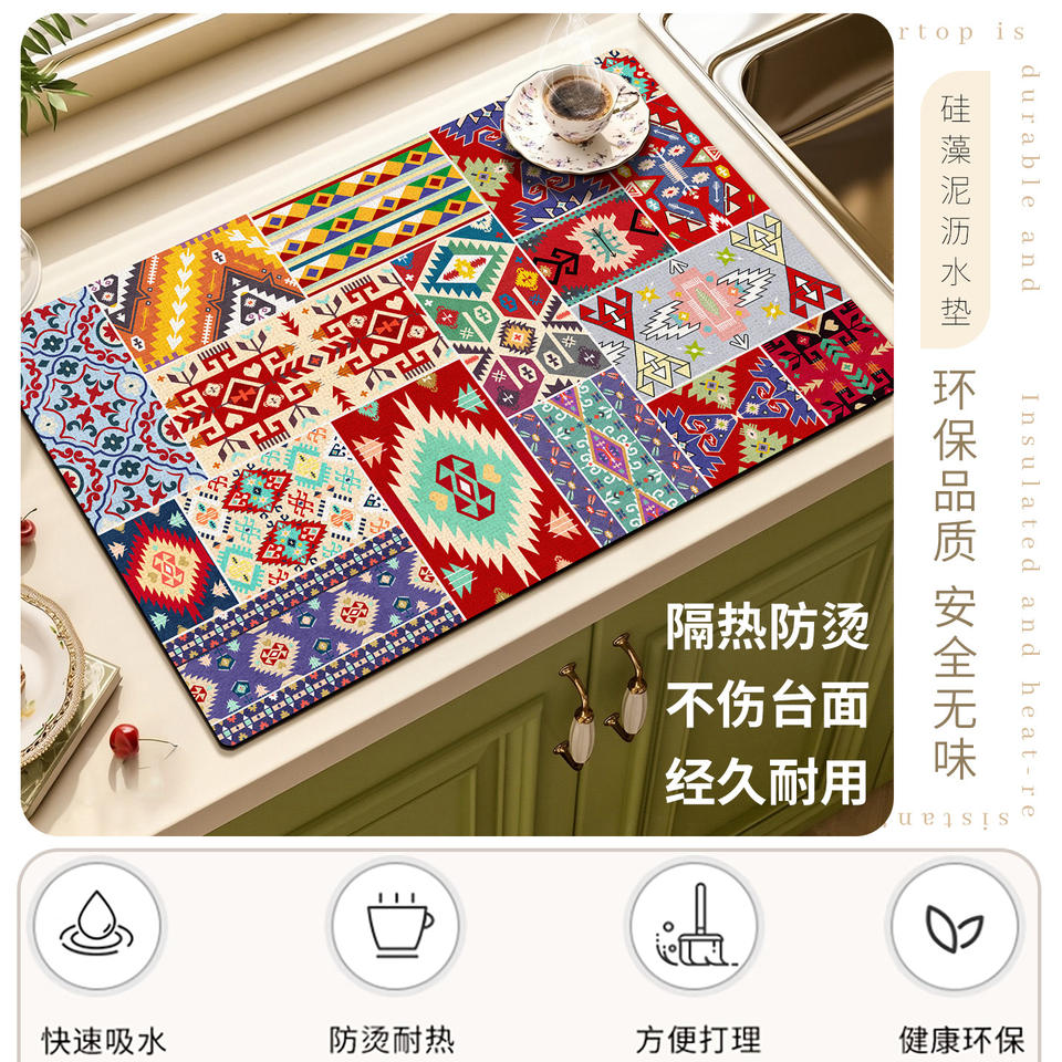 Patchwork Kitchen Mat 30x40cm 40x60cm Polyester Rectangular Absorbent Drain Mat For Counter Bathroom Anti Scald Heat Insulating