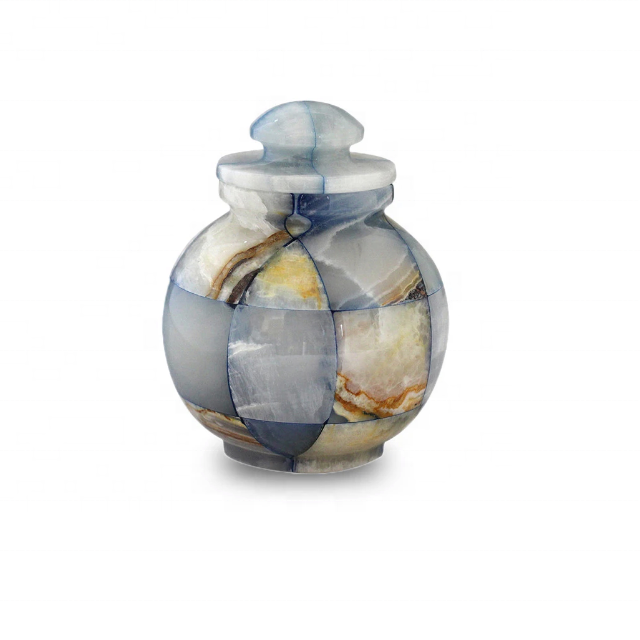 Patchwork Onyx Marble American/European Style Adult Cremation Urn Polished Stone Eco-Friendly Artistic Design Human Ashes Vessel