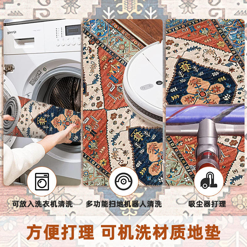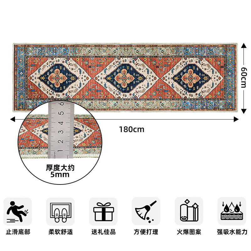 Tapis de couloir patchwork rectangulaire en fibre de polyester lavable pour usage domestique, tapis d'entrée en peluche courte antidérapant TPR, longue bande