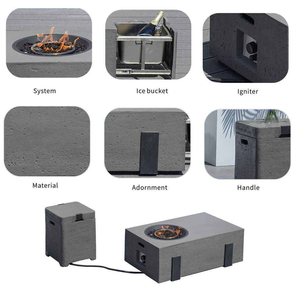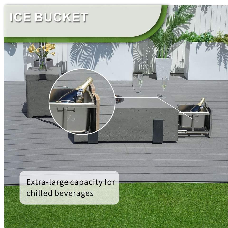 Ensemble de 2 tables de foyer de jardin avec seau à glace intégré, foyers durables en oxyde de magnésium