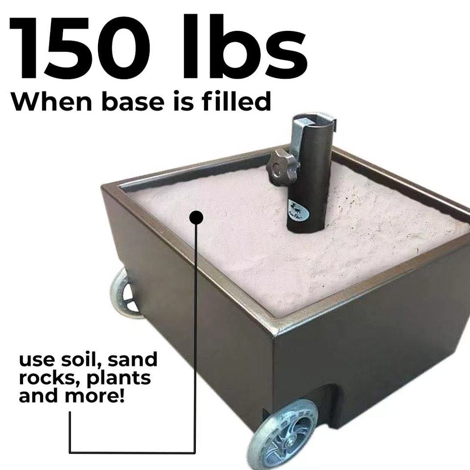 Support de parasol d'extérieur en acier robuste avec deux roues, jardinière en acier, 17,7L X 17.7W X 10.2H en métal moderne