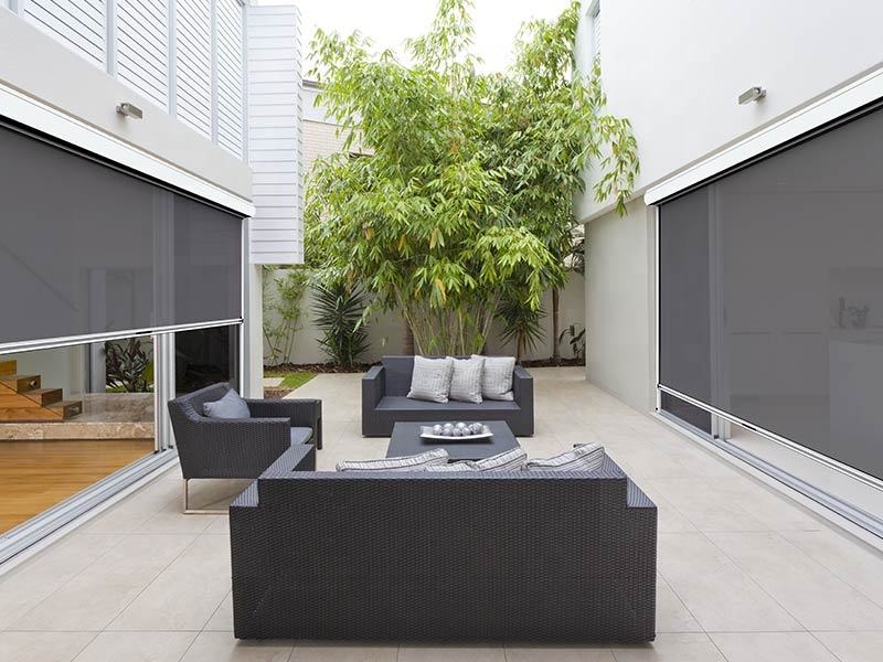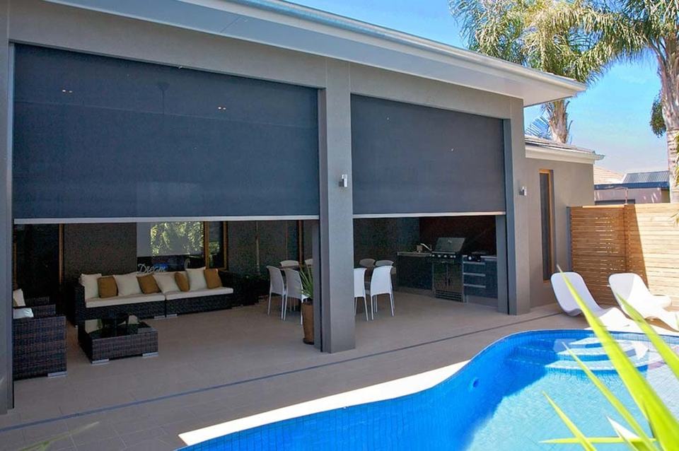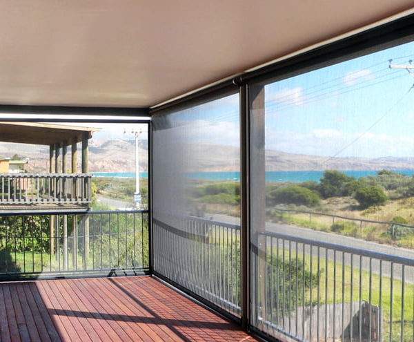 Patio extérieur Balcon Imperméable Pvc Rouleau Ziptrack Stores Motorisés