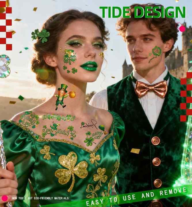 Tatouage temporaire jetable trèfle vert pour la fête de la Saint-Patrick, design universel pour toutes les occasions, pour filles