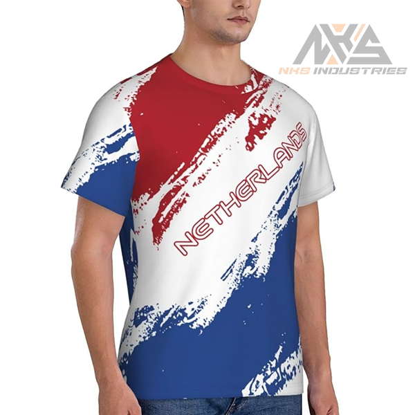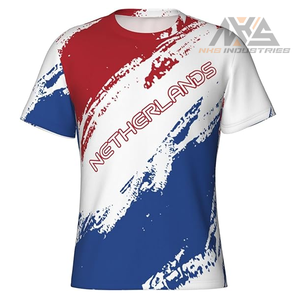 T-shirt de sport en microfibre de couleur drapeau des Pays-Bas patriotique-moulant, conception d'impression 3D pour les athlètes