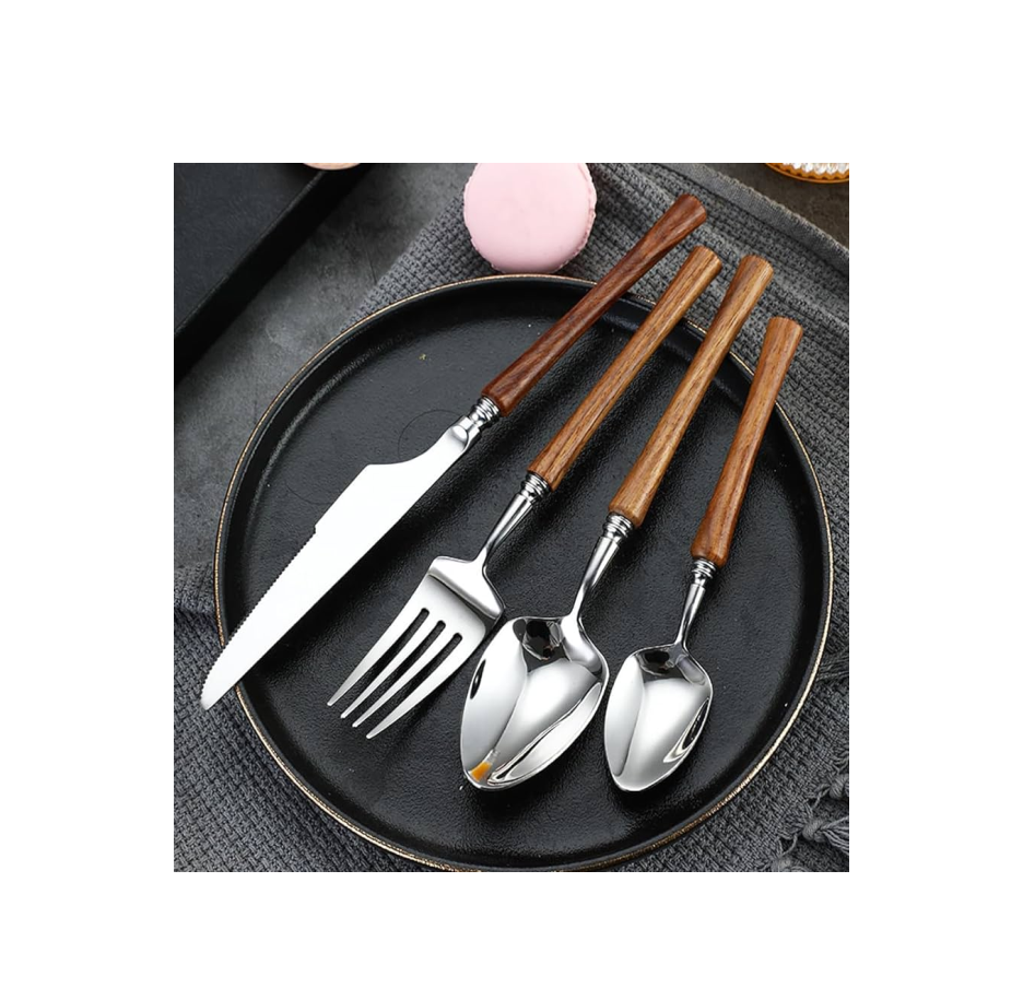 Cuillères à fourchette en acier inoxydable à motif de fruits Cuillère à dessert Cuillère à thé pour bonbons avec manche en bois Accessoires de cuisine pour la maison