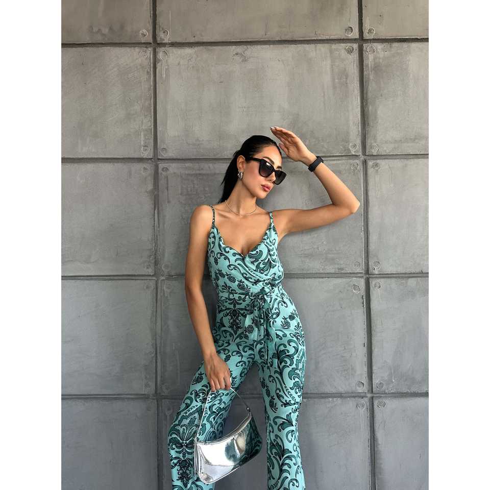Combinaison à bretelles à motif, taille haute, col en V, en mousseline respirante, style streetwear