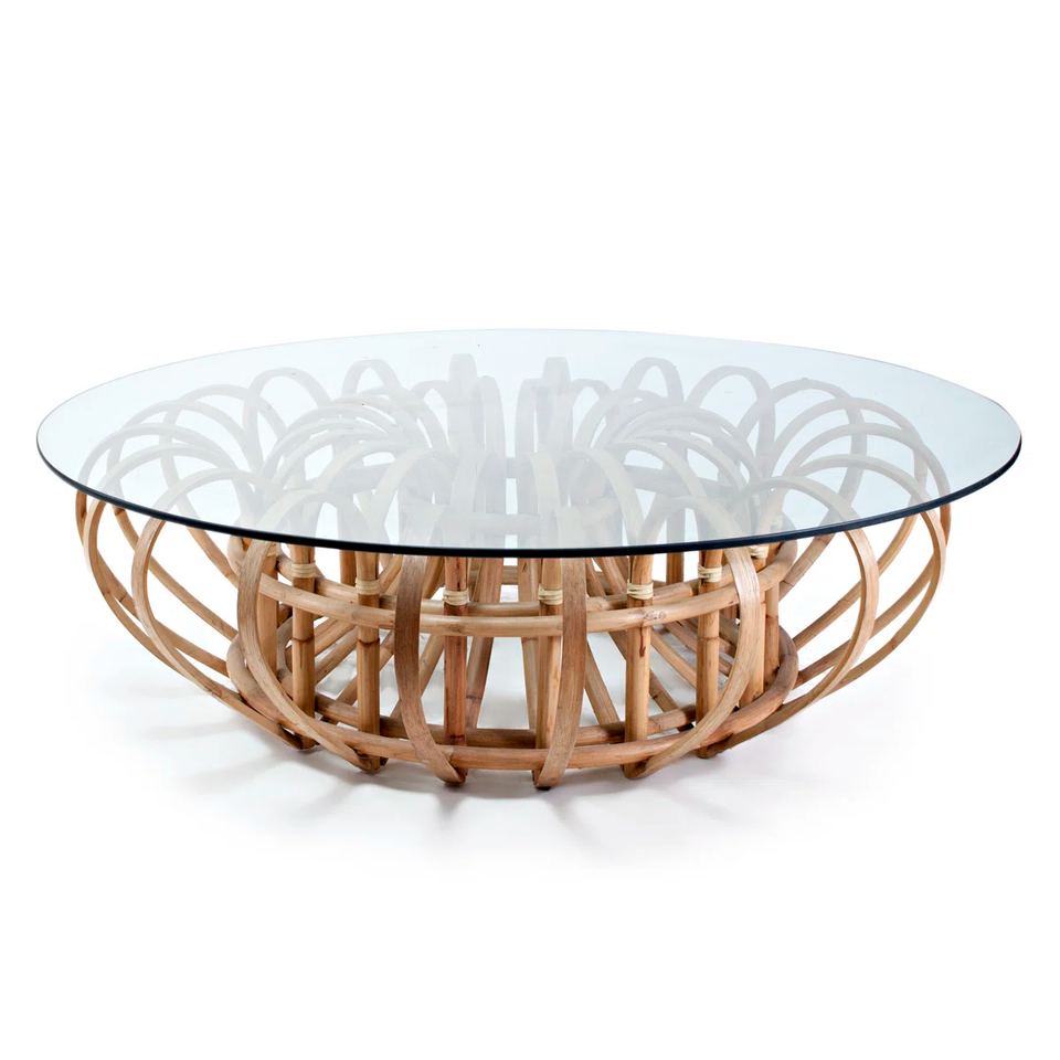 Patterned rattan table:Size: 16.75'' H X 54'' W X 54'' D