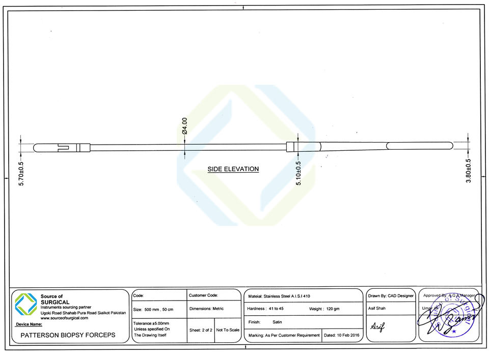 Pince à biopsie manuelle Patterson Instruments chirurgicaux en acier inoxydable