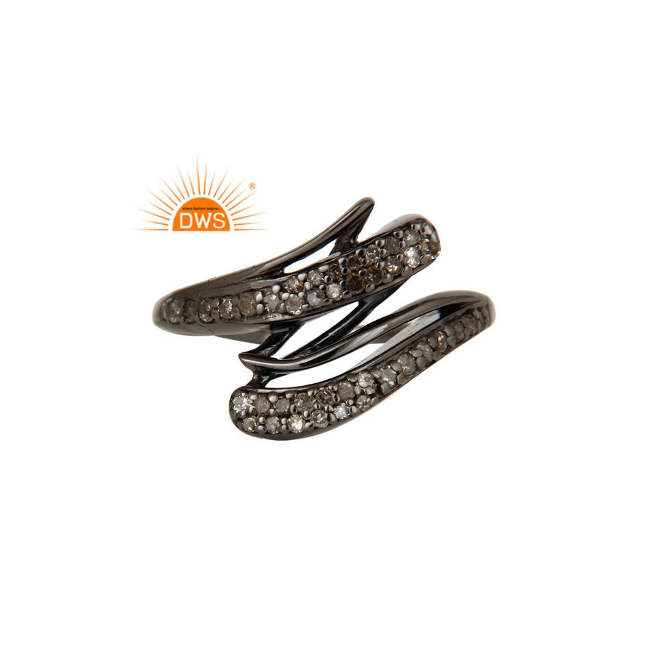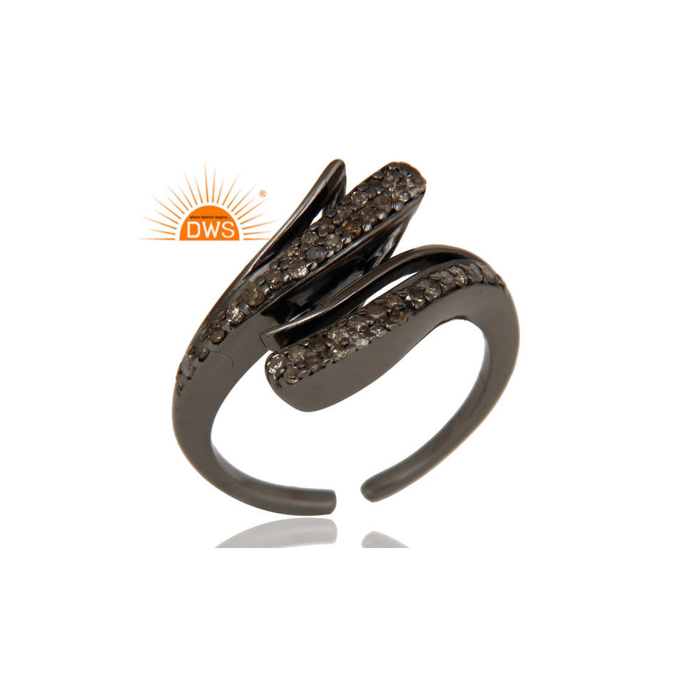 Pave Diamond Designer Midi Ring Bijoux Pour Femmes Cadeau Pour Elle Noir Rhodium Bijoux En Argent Sterling Grossiste