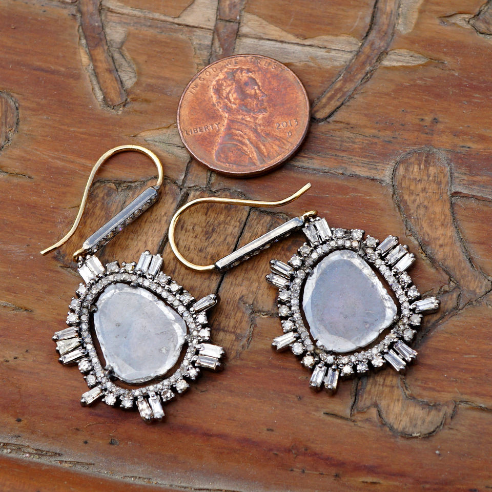 Pave Diamond – boucles d'oreilles pendantes en argent 925 oxydé, bijoux en Baguette faits à la main, bijoux en or 14k