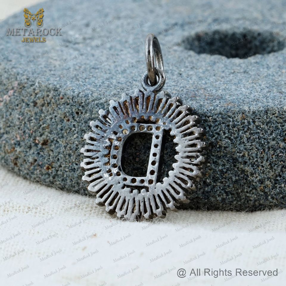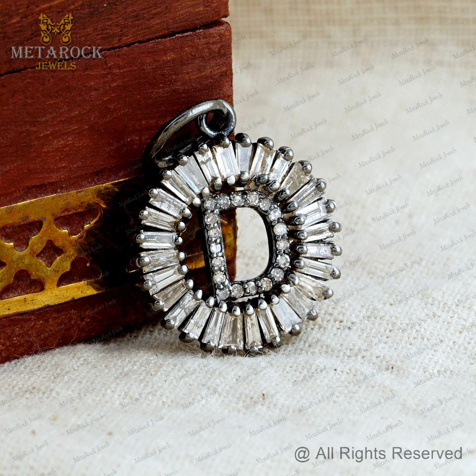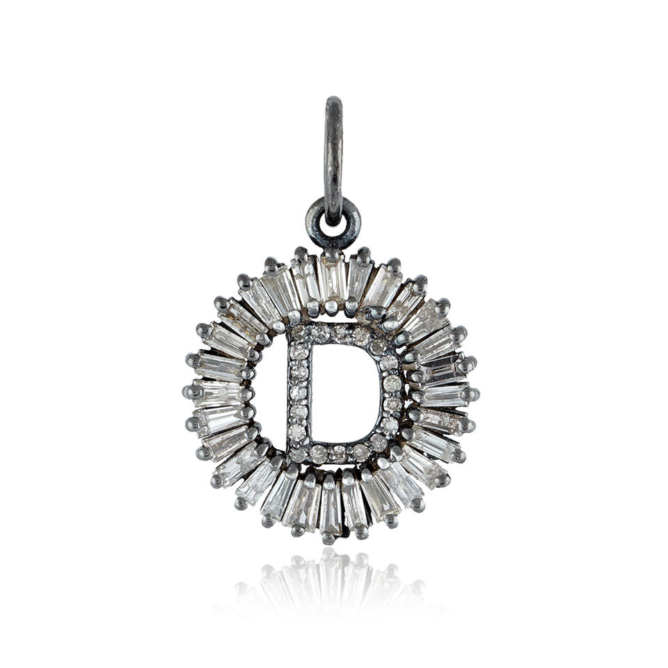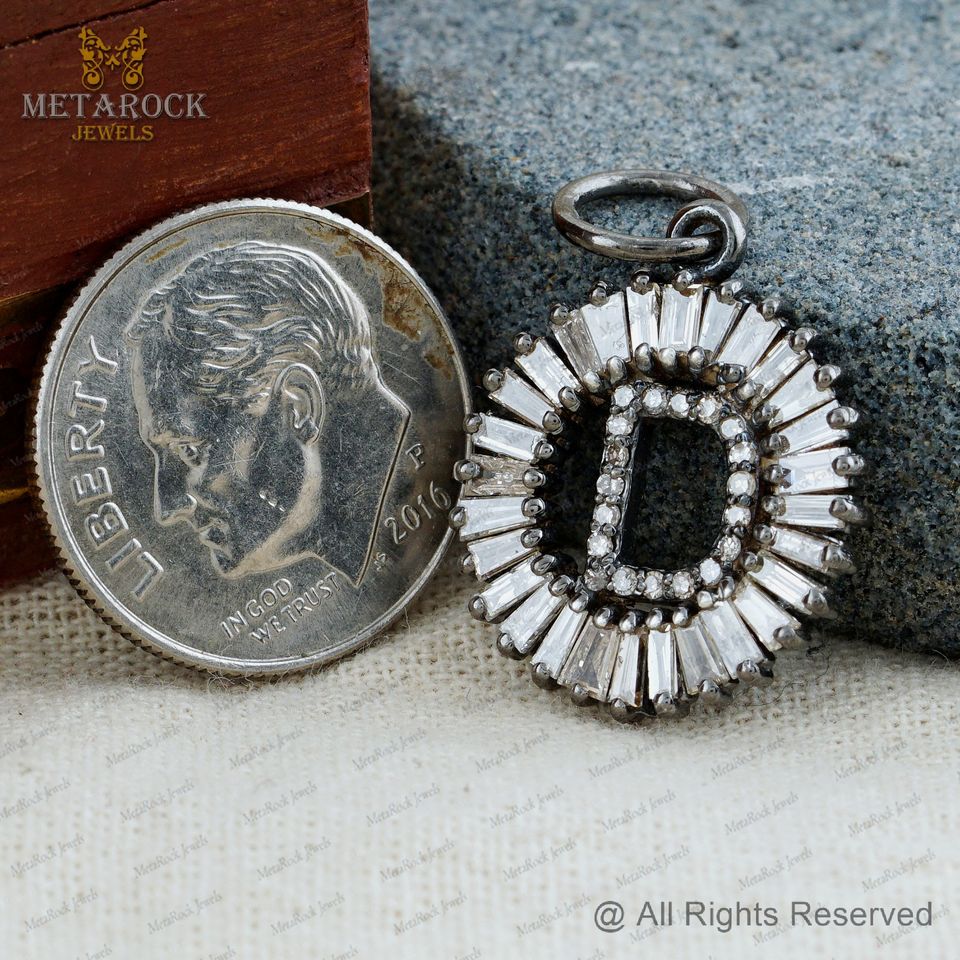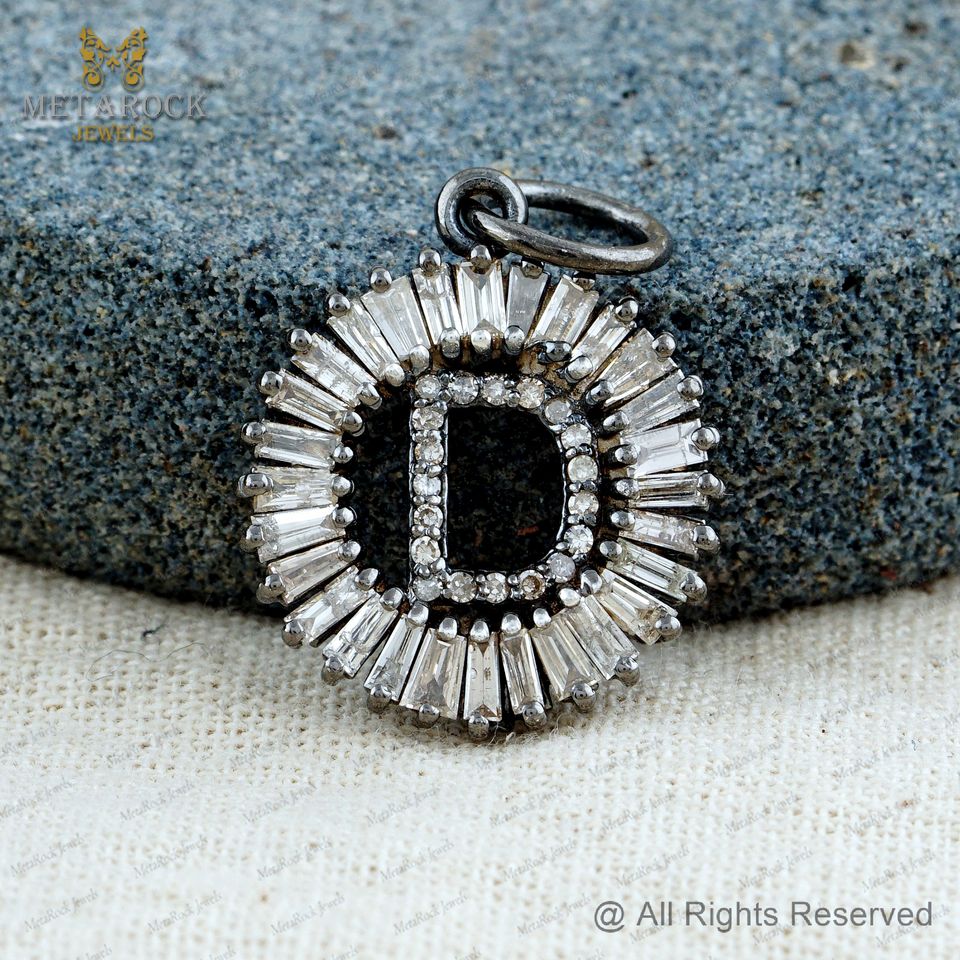 Pavé Diamant Initiale D Charme Oxydé 925 Argent Baguette Diamant Alphabet Charme Pendentif Unisexe Bijoux En Gros