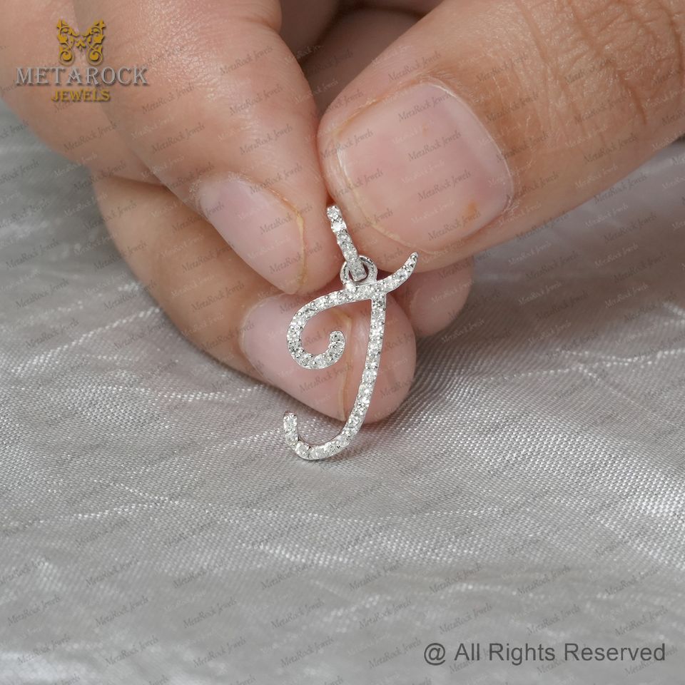 Pave Diamond Initial J Pendentif Solide 14k Or Blanc Charmes pour Bijoux Cadeaux D'anniversaire Alphabets, Lettres Pendentif À La Main