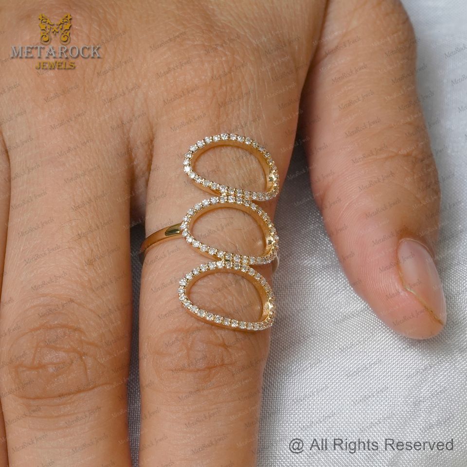 Bague en diamant pavé solide 14k bague en or bijoux en diamant faits à la main bague unisexe cadeau de mariage de qualité supérieure