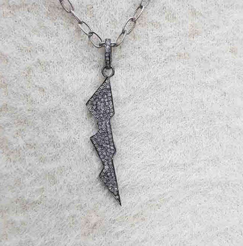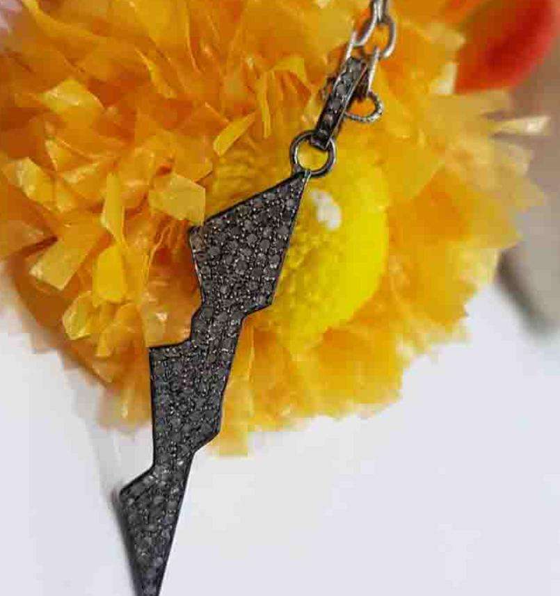 Pendentif de mariage pour femme Luxvory en argent sterling 925 plaqué rhodium noir vintage, serti de diamants naturels en forme unique, 50x10MM