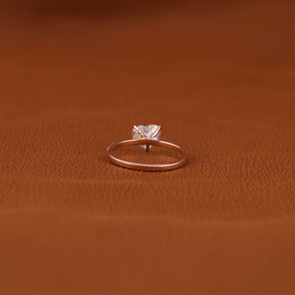 Pave Setting Heart Shape Cut Bague de fiançailles Design élégant Bague classique de luxe avec diamant créé en laboratoire en or rose 10KT
