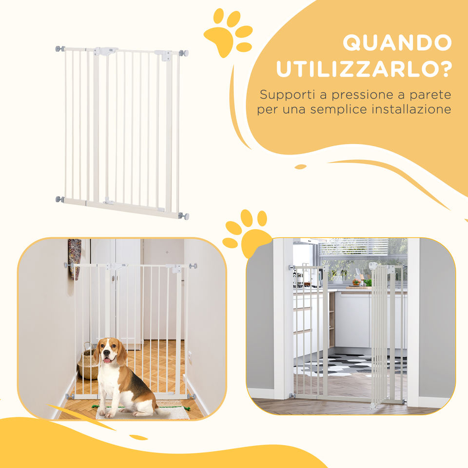 PawHut Dog Gate avec 4 vis réglables et ruban adhésif, métal et plastique, 86x104.1 cm, blanc