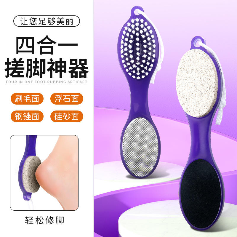 Lime à pieds 4-en-1 violette avec masseur et pierre ponce pour usage domestique, éliminateur de callosités et exfoliant pour talons