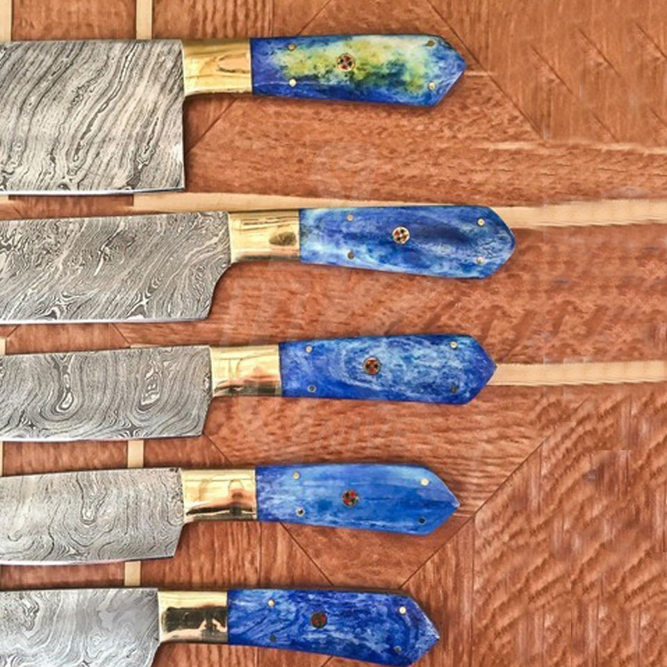 Ensemble de 6 couteaux de cuisine japonais en acier, damas VG10 chef désochage, couteaux utilitaires Santoku manche en bois
