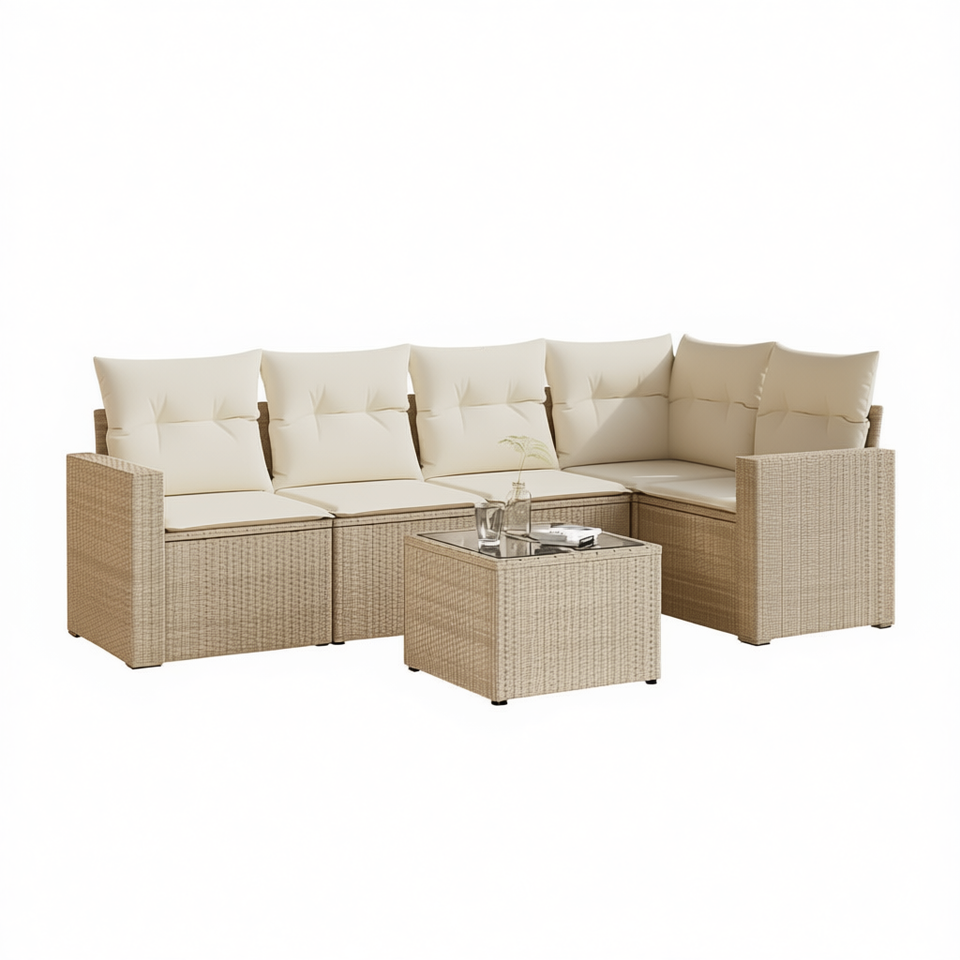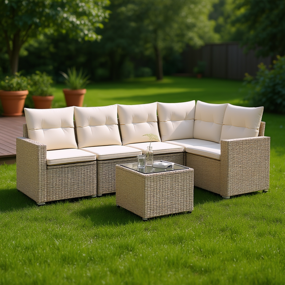 Ensemble de canapés de jardin en rotin 6 places, mobilier d'extérieur au design contemporain avec structure en acier thermolaqué