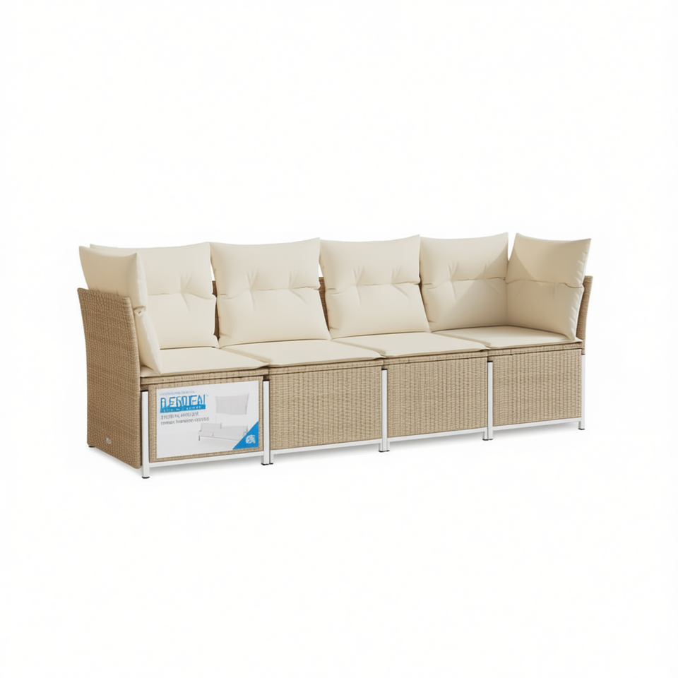 Ensemble de canapés de patio en rotin beige 4 places, mobilier de jardin extérieur avec structure en acier thermolaqué, design contemporain