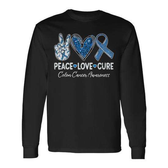 T-shirt à manches longues Peace Love Cure Colon Cancer Awareness